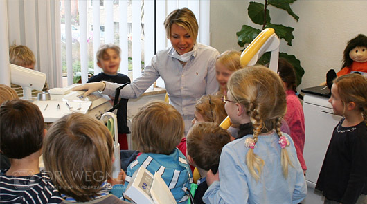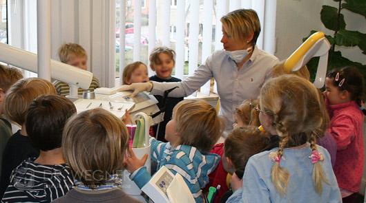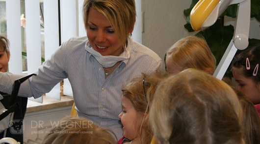 Zu unserem Konzept gehören spezielle Kinderbehandlungs-Nachmittage, an denen keine großen Patienten behandelt werden. Somit gehört die Praxis mit allen Bereichen an diesen Tagen nur unseren kleinen Patienten und auch ein bisschen den Eltern.